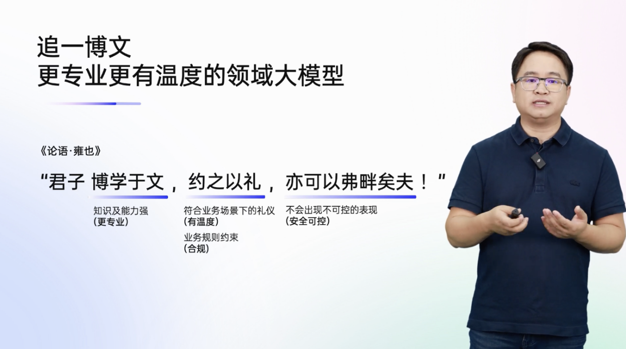而博文名字的由来,与四个理念相契合。博文名字的灵感源自《论语》,“君子博学于文,约之以礼,亦可以弗畔矣夫。”博学于文,表示拥有更专业的知识和能力;约之以礼,是符合业务场景下的“礼仪”,合规且有温度;亦可以弗畔矣夫,即不会出现不可控的情况。