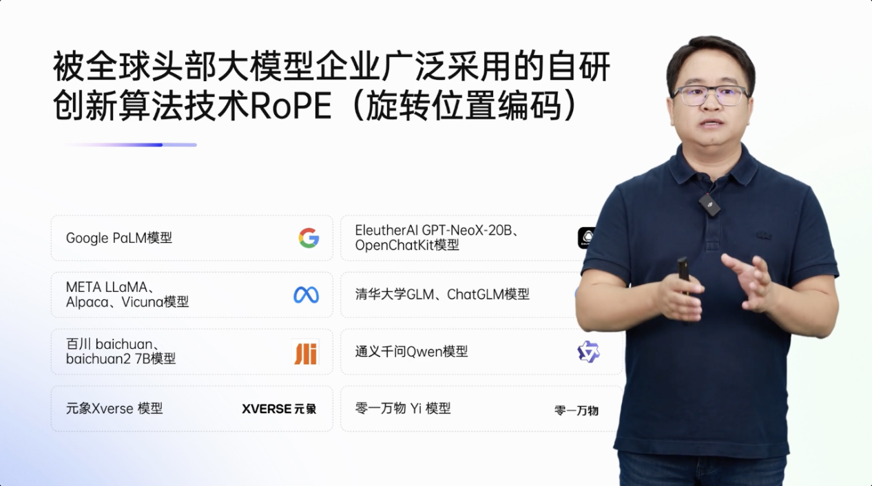 在自然语言预训练模型方面,先后研发了Simbert、T5中文模型、RoformerV2等创新模型。自研Roformer模型中的旋转式位置编码RoPE算法技术被Google、Meta、阿里、百川等全球头部大模型企业广泛采用,成为行业内大模型的标配位置编码方式之一。此外,追一科技在领域数据方面具有天然优势,在过去七年的产业化落地过程中,积累了丰富且高质量的领域对话数据、有标签的行业数据和大量通用标注数据,为构建领域模型奠定了基础。同时,在过往服务中大型企业客户时,追一科技的AI员工产品已经落地到非常多的行业,以及各种各样的业务场景中。自研创新的底层算法技术、高质量的领域专有数据、明确的业务场景落地,这就是追一科技在领域大模型构建路上的底气所在。